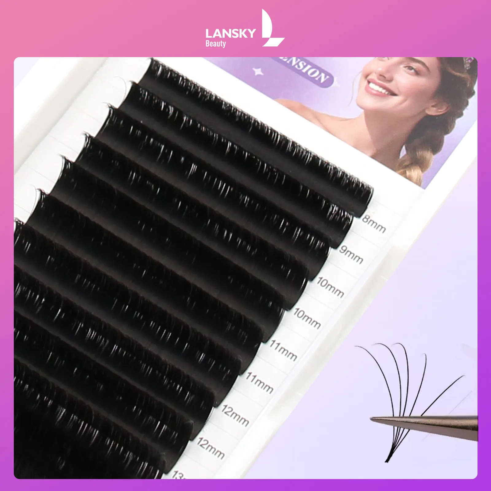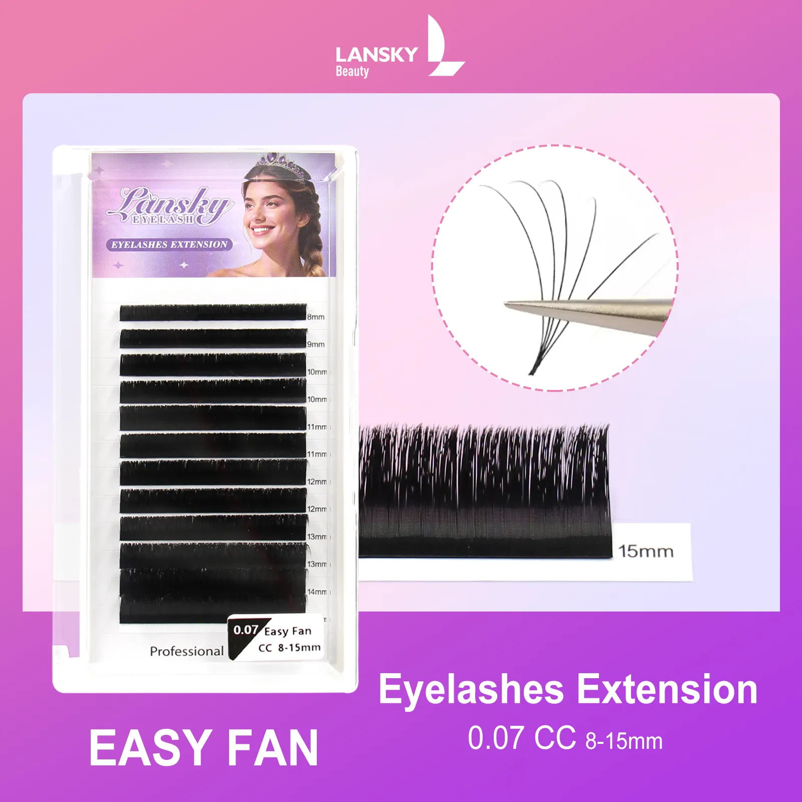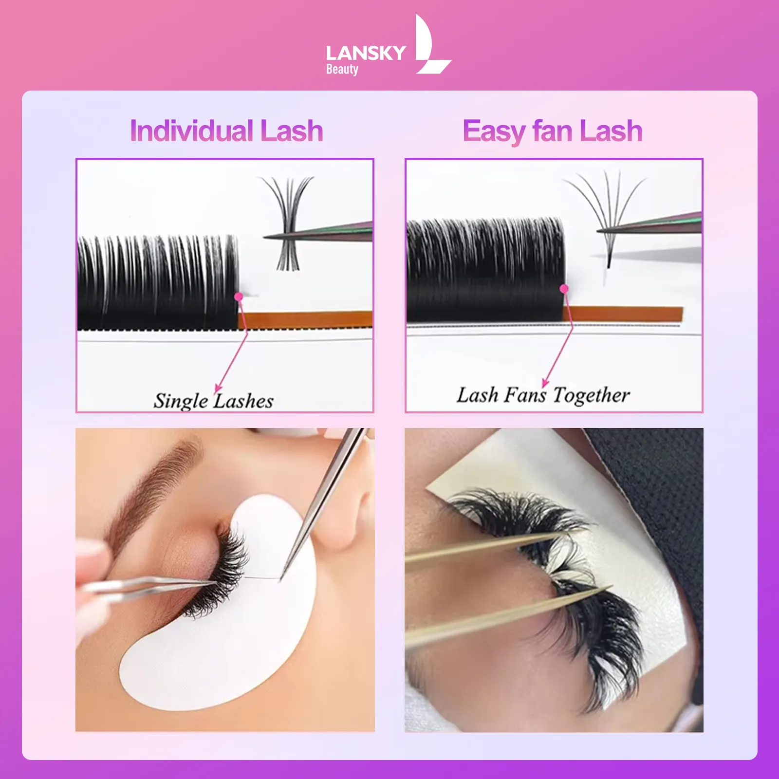 By Lansky eyelashes extension, You’ll create customized eyelashes makeup for your valued customers ranging from subtle to dramatic appearance, with proper care maintaining your volume eyelash extensions for 4-6 weeks. This lashes extension is made of lightweight faux mink fiber and eco-friendly.