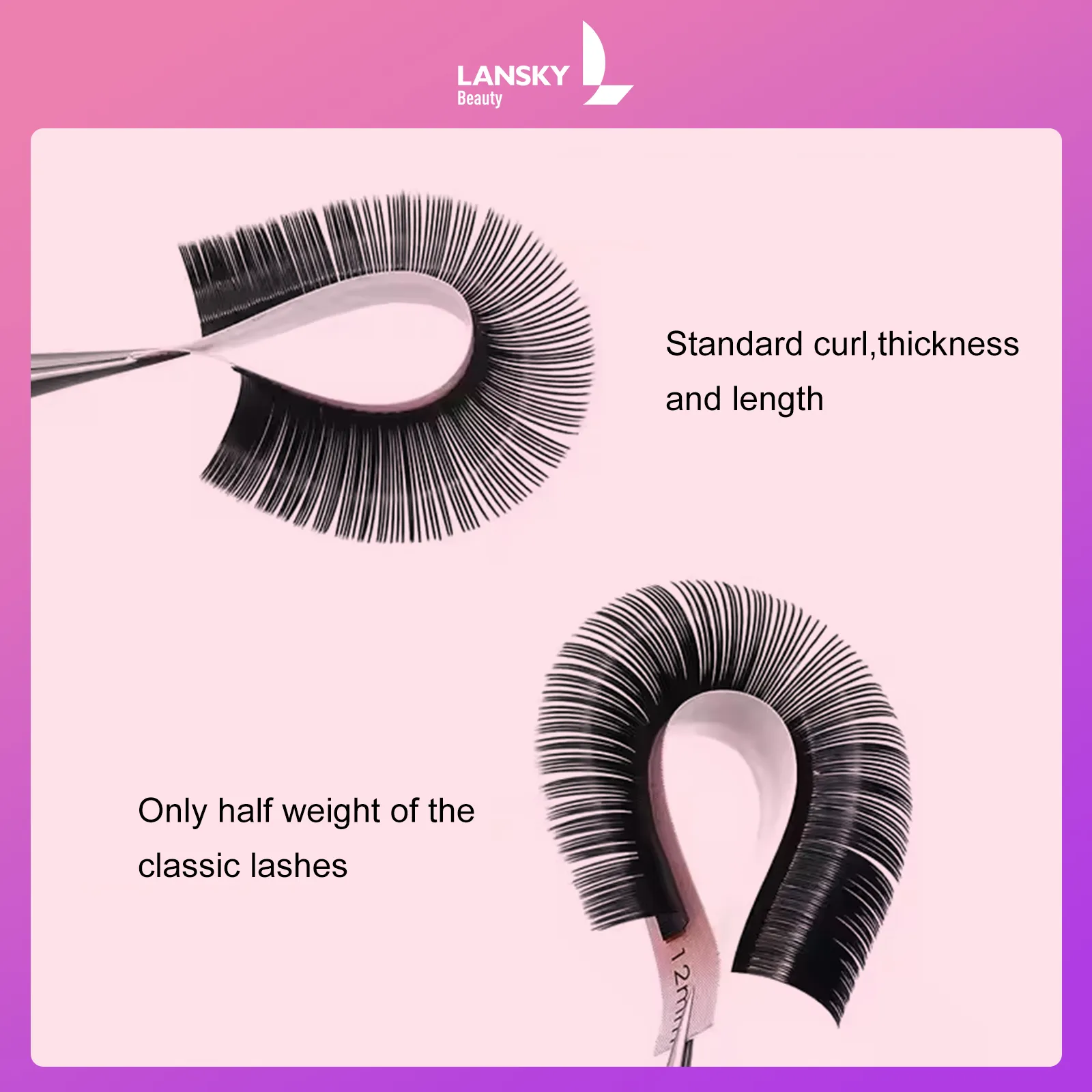 Lansky beauty is an professional and stable supplier for the lashes extension. Every lashes from us is inspected by our QC staff and Assured you that every lashes quality is satisfied with you. This synthetic mink materials create a soft, feathery appearance that blends seamlessly with the natural lashes,creating stunning fan-shaped layers.